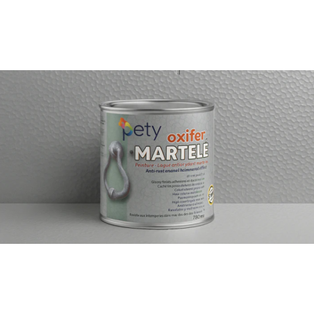 OXIRITE Martelé Argent est une peinture antirouille directe sur métal, résistante aux intempéries et offrant une finition décorative martelée.